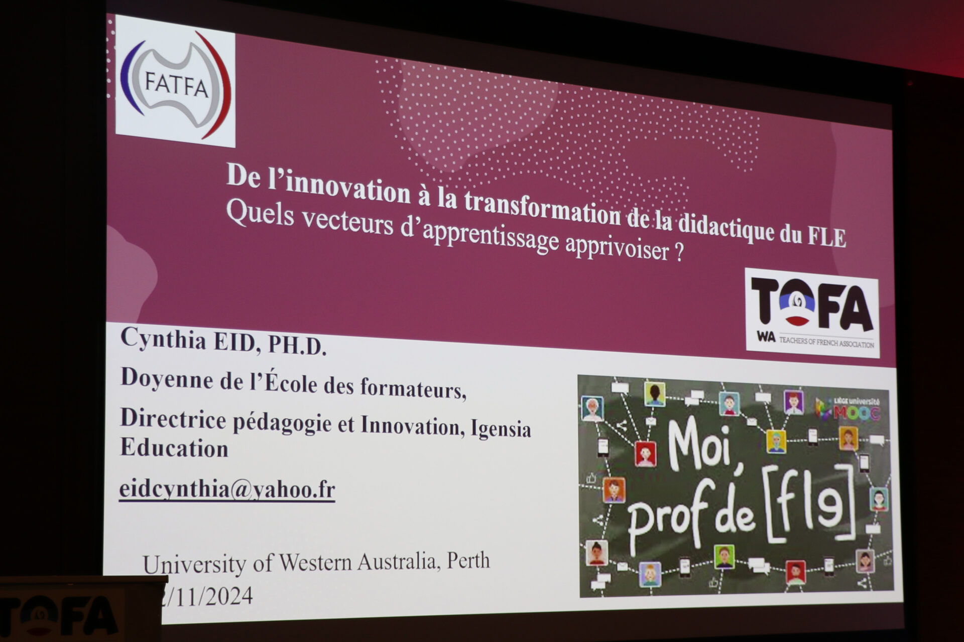 In 2024, the Stage à la plage was integrated into the bi-annual National FATFA conference and held in Perth on November 22-23. Over 100 participants from all corners of Australia attended the unforgettable two-day conference at the University of Western Australia. His excellence Mr Pierre-André Imbert, ambassador of France to Australia attended the opening ceremony as well as our awards ceremony at dinner time.