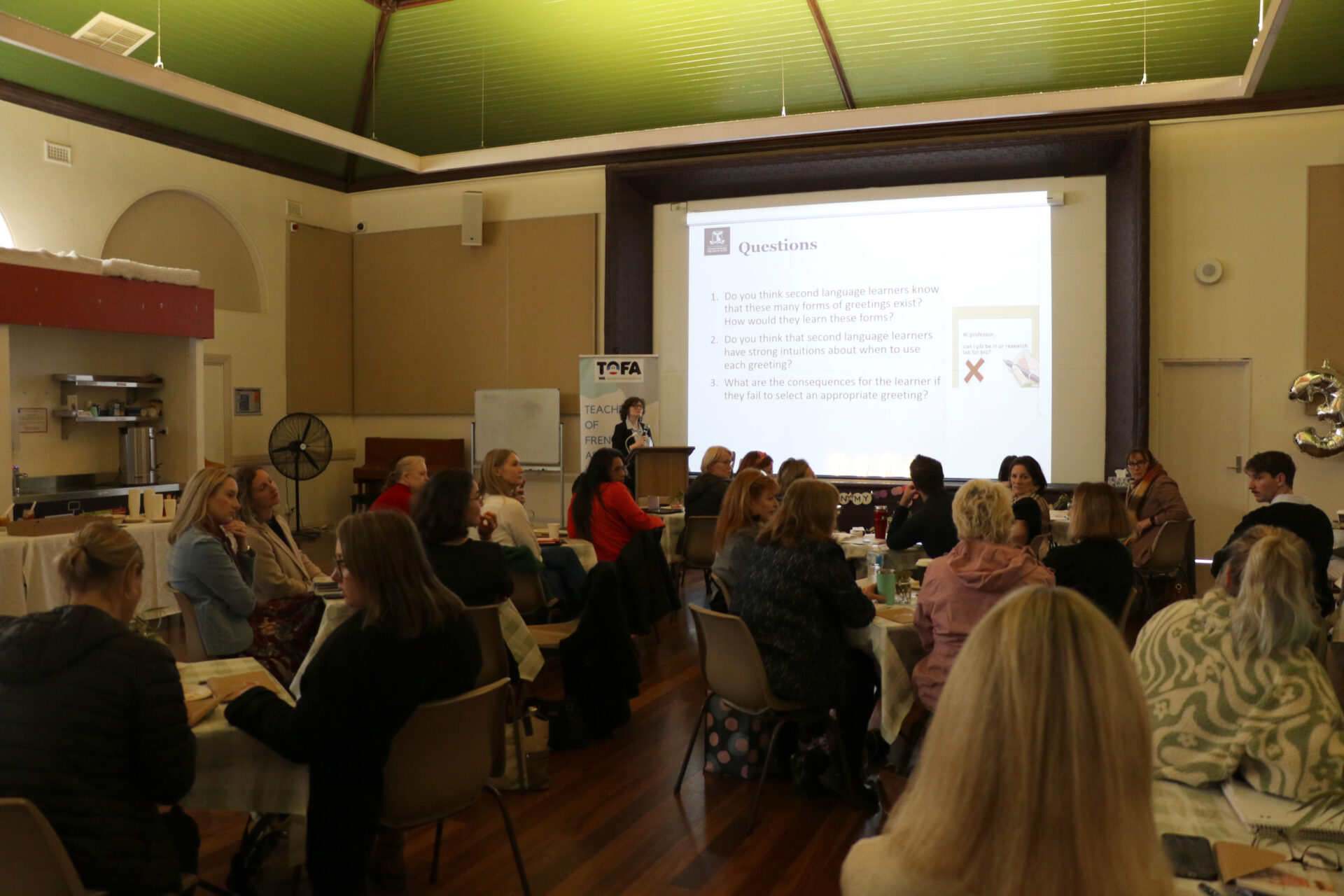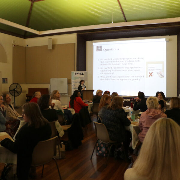 In 2025, we celebrated 30 years of TOFA WA ! A morning Conference was held at Tranby Hall in the Perth CBD with 50 participants. Associate Professor Chloé Diskin-Holdaway was our guest speaker and she presented a Keynote titled ‘Rethinking Linguistic Competence’. Following an inspiring and informative morning, a celebratory lunch was held on a swan river cruise with 60 participants, including past presidents of TOFA.