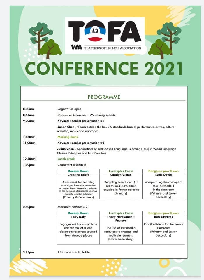 Our Keynote Speaker was Julian Chen, expert in Language Learning Methodologies and Lecturer at Curtin University. He shared his knowledge on successful Lesson Design and Task-based Language Teaching.